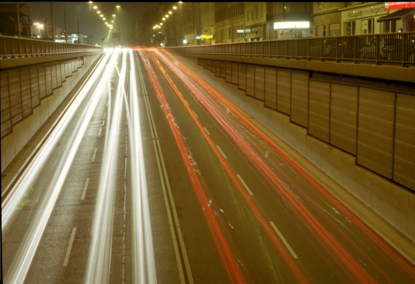 Viena, podul Favorita, ora 23, diafragma F/20, timp de expunere 30 de secunde, film FujiColor Superia ISO 100